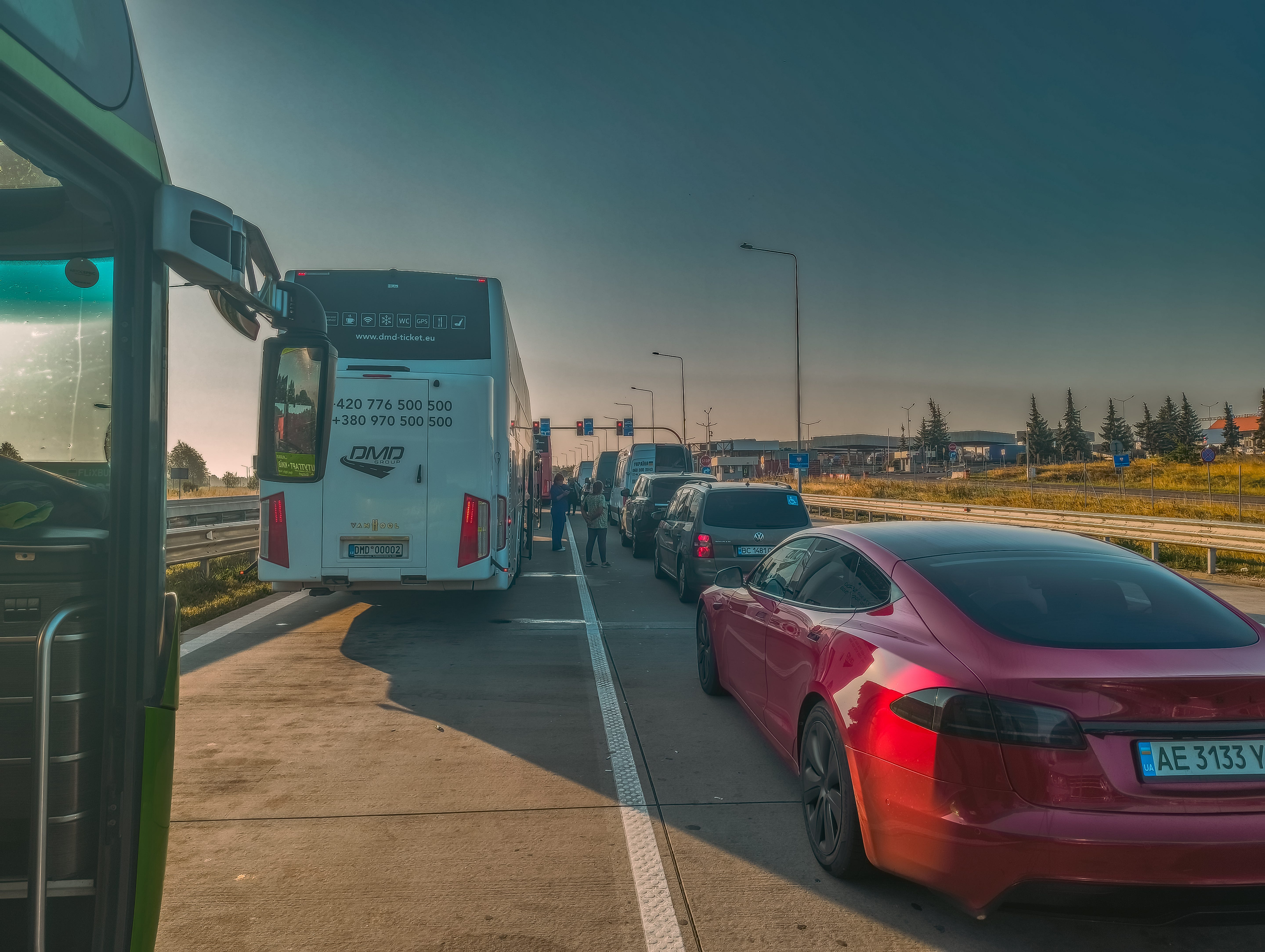 Im Bus sitzen 58 Menschen. Seit der Abfahrt in Chemnitz hat sich daran wenig geändert. 4 davon sind männlich gelesen: Ich, die zwei Fahrer und ein älterer Wessi, der mich an der ukrainischen Grenze angesprochen hat. Er fragte mich, was ich in der Ukraine will. Ich sagte, ich bin Journalist, unterwegs für eine Woche. Ich fragte ihn zurück. Doch bevor er antworten konnte, trat er vor zum Schalter. Ich habe ihn danach nicht mehr gefragt.