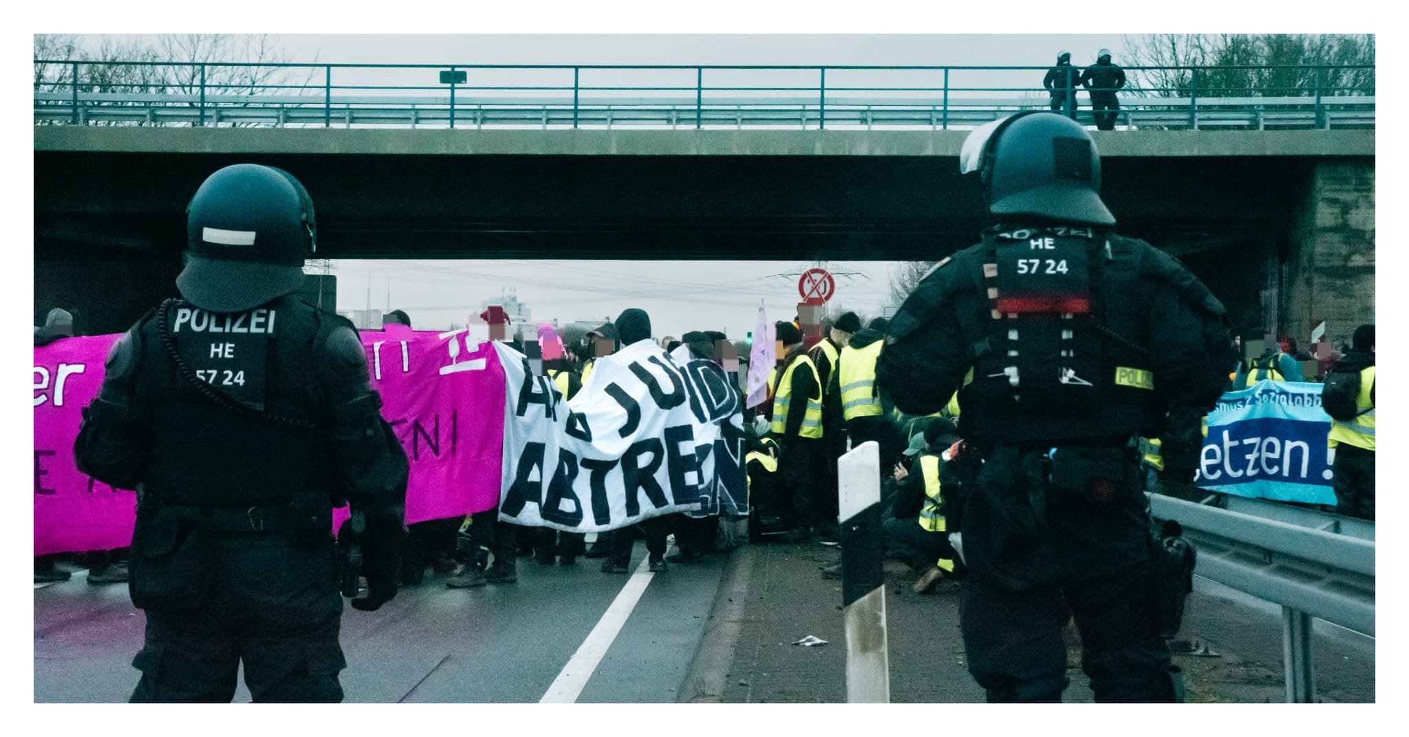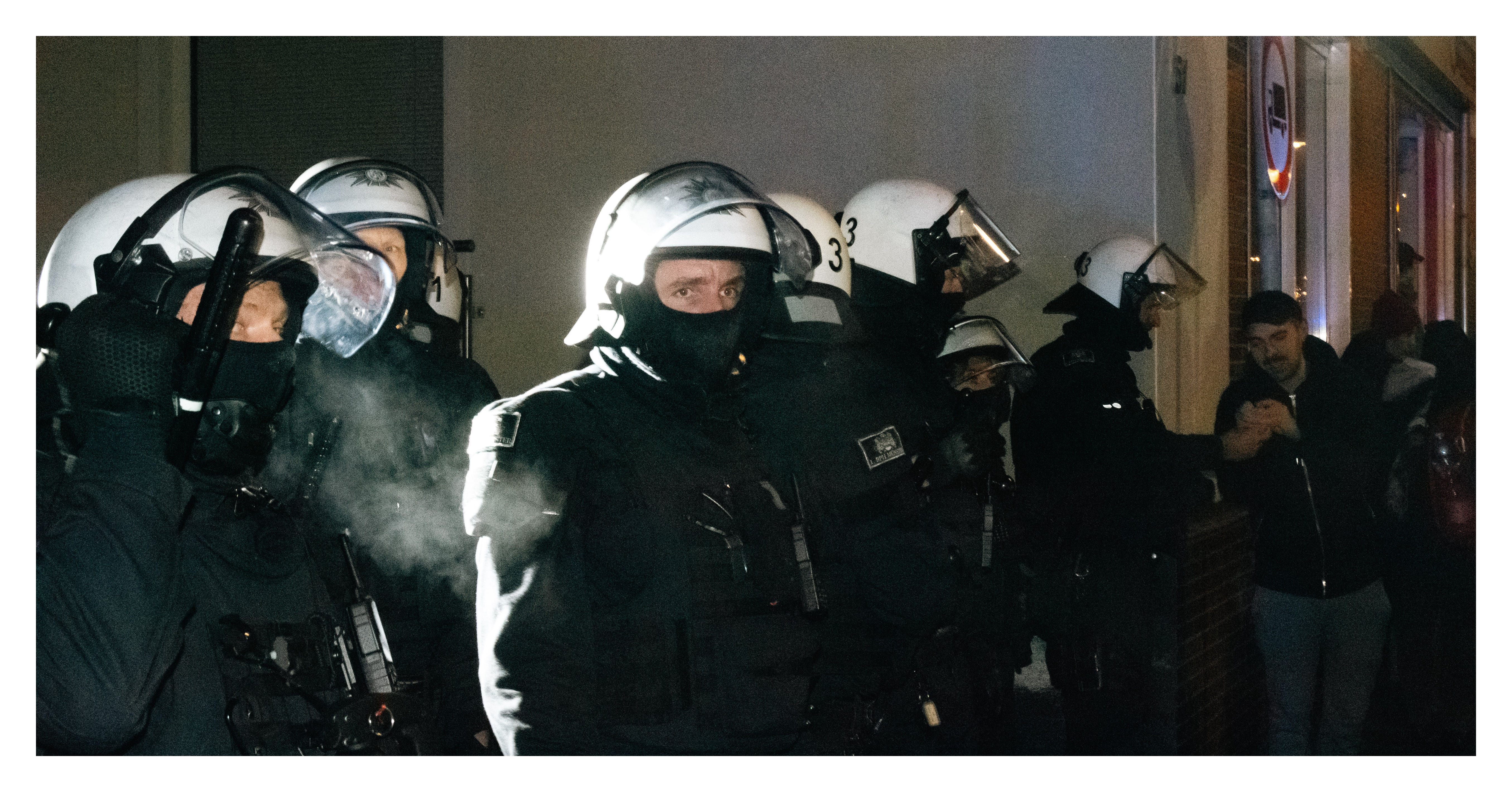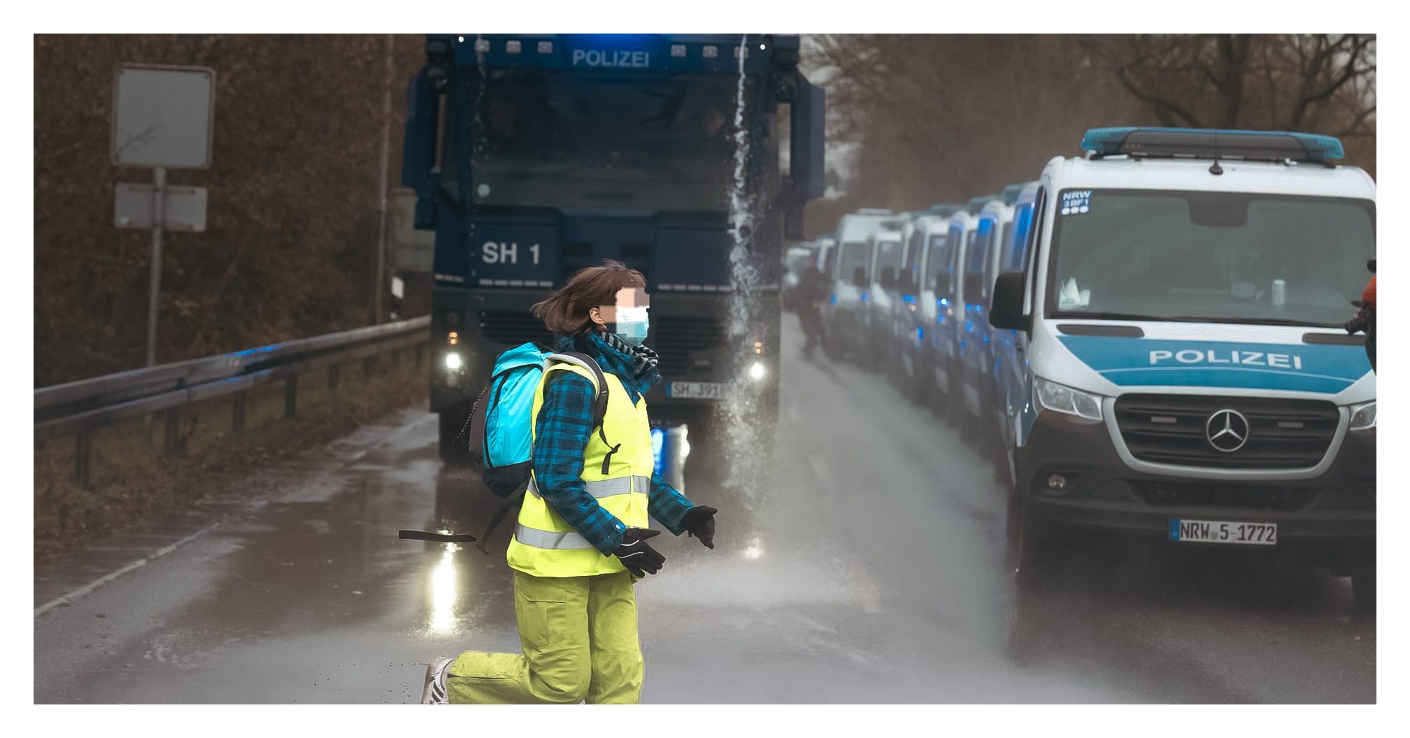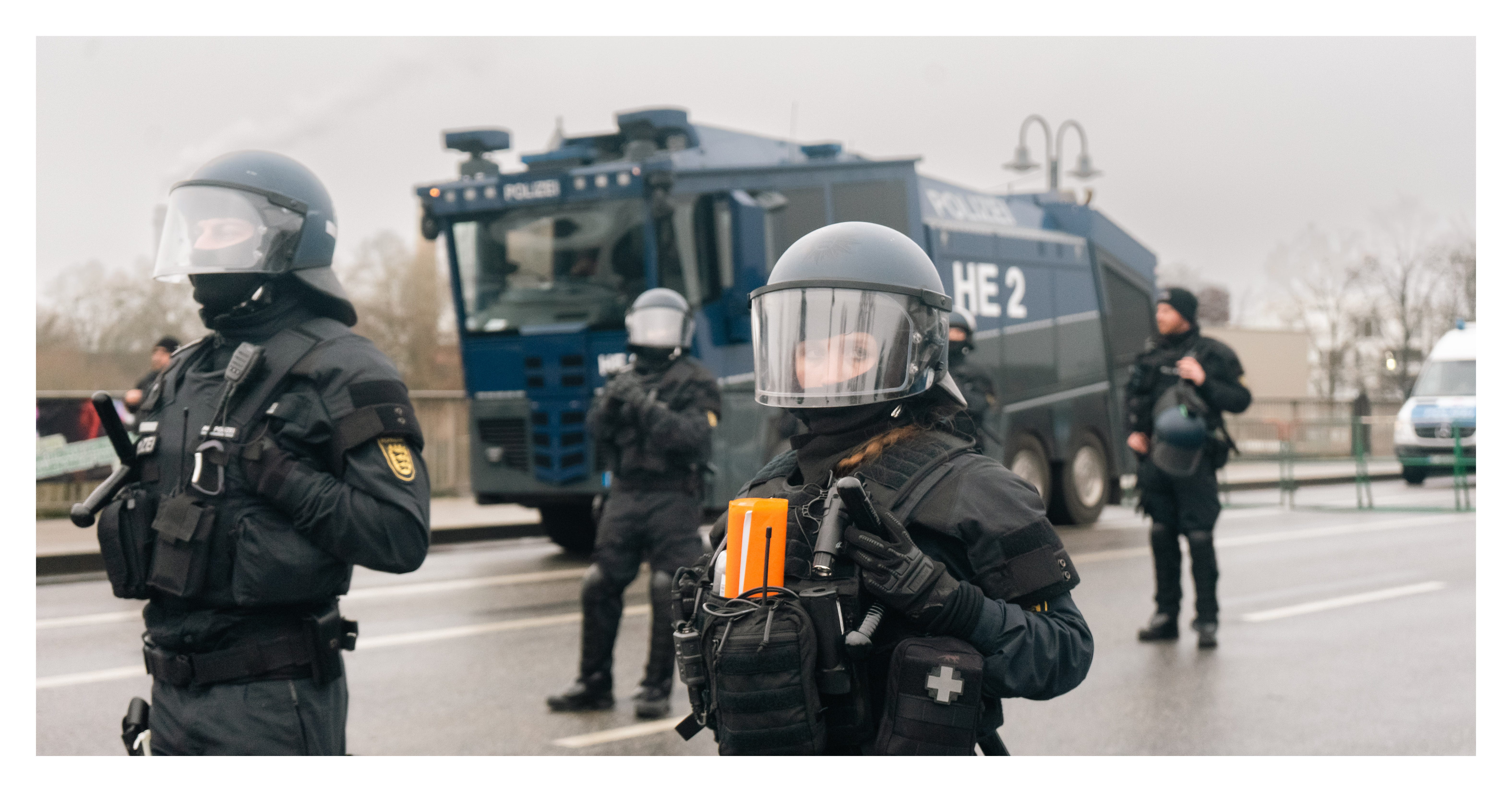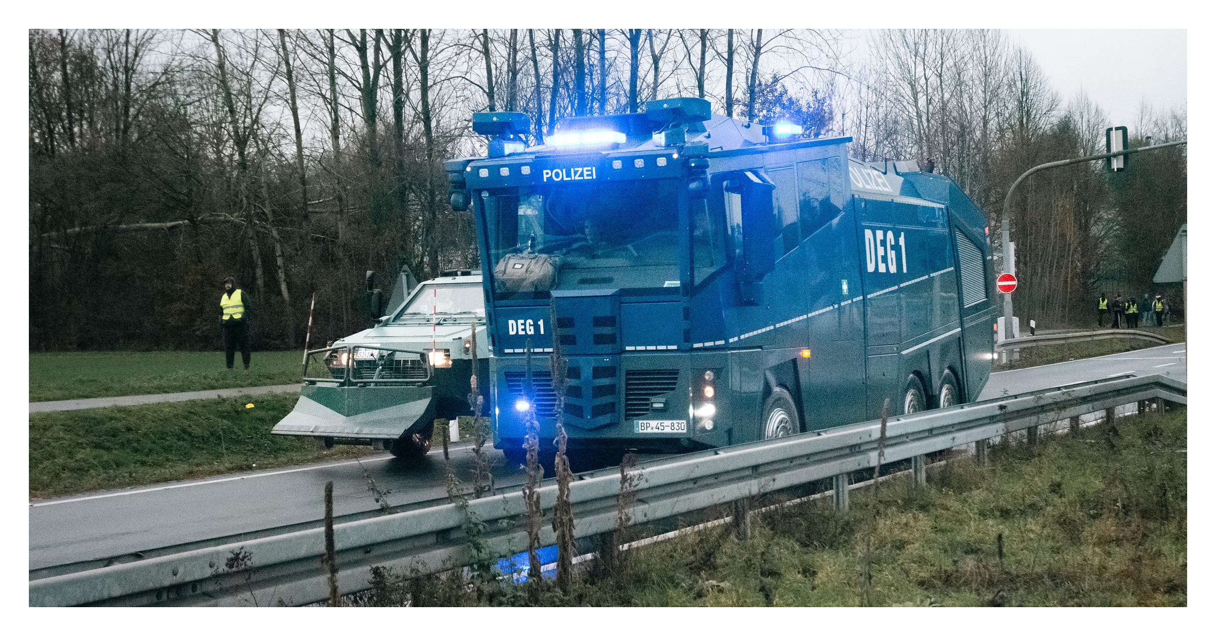 Dennoch spielte sich ein Großteil des Protests außer Sichtweite des Geschehens ab. Während auf dem Anlagenring zehntausende Menschen zu Kraftklub und Juli tanzten und versuchten, der angespannten Lage etwas Leichtigkeit zu verleihen, räumte die Polizei nach und nach mehrere Blockaden. Dabei setzte sie Pfefferspray, Schlagstöcke und Wasserwerfer ein – bei Temperaturen um den Gefrierpunkt. Teilweise griffen Einsatzkräfte Protestgruppen im Sprint an, Schlagstöcke erhoben, laut schreiend, als ginge es darum, Feinde zu vertreiben, nicht demokratische Bürger:innen, die ihr Grundrecht auf Protest ausübten.