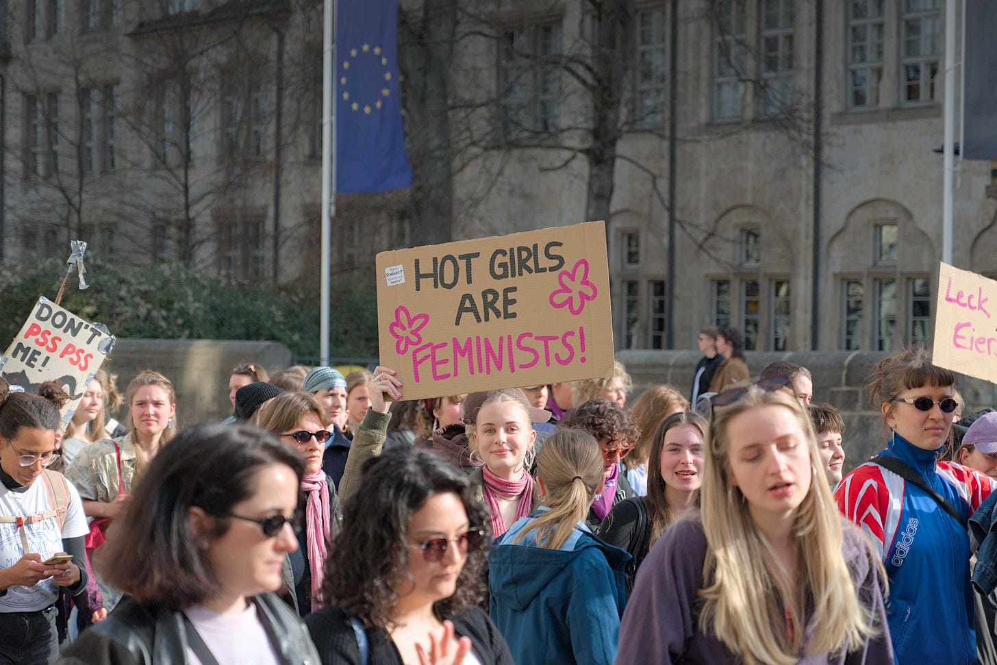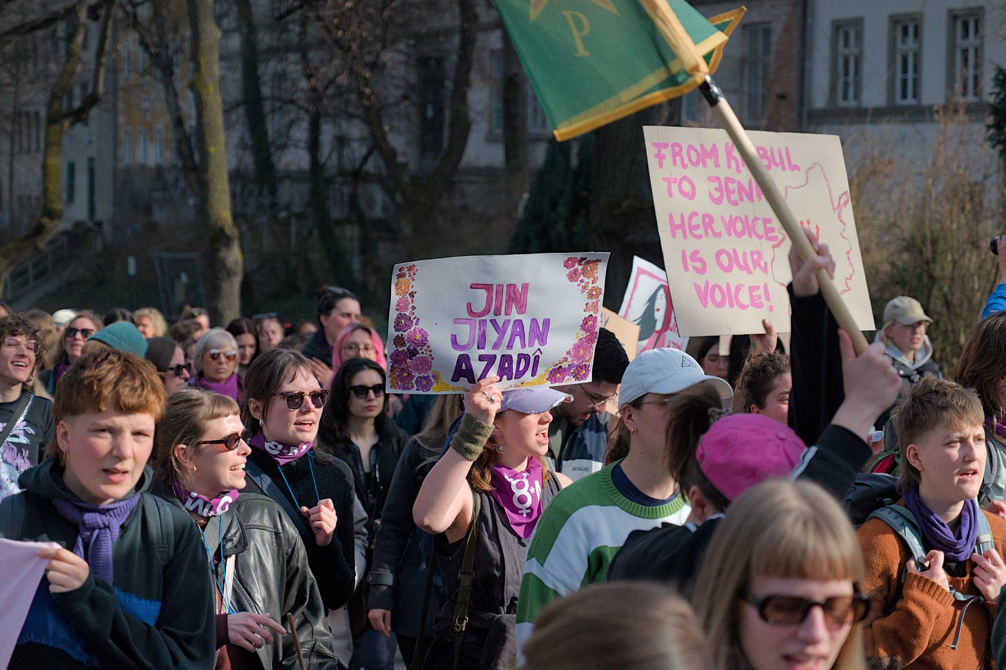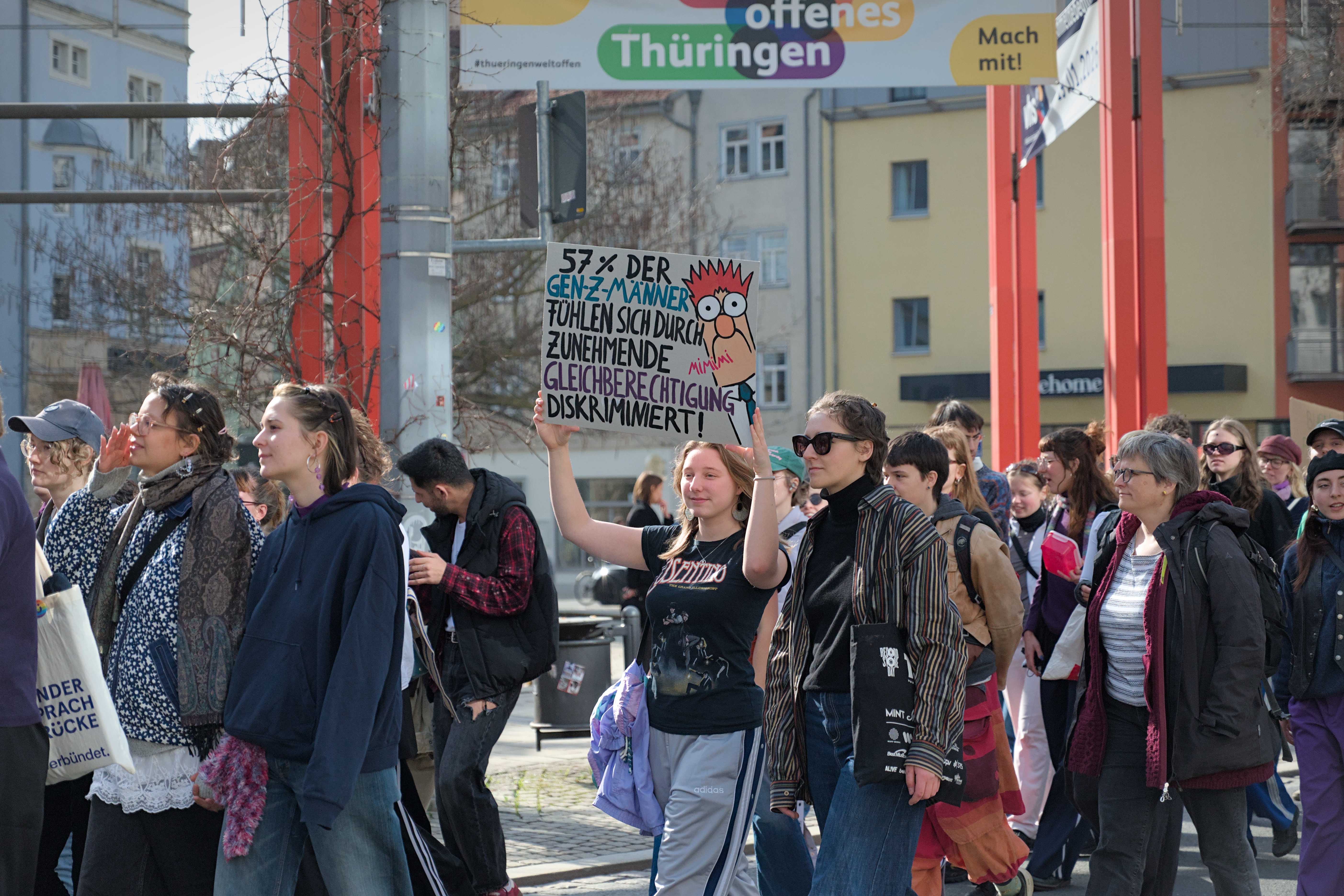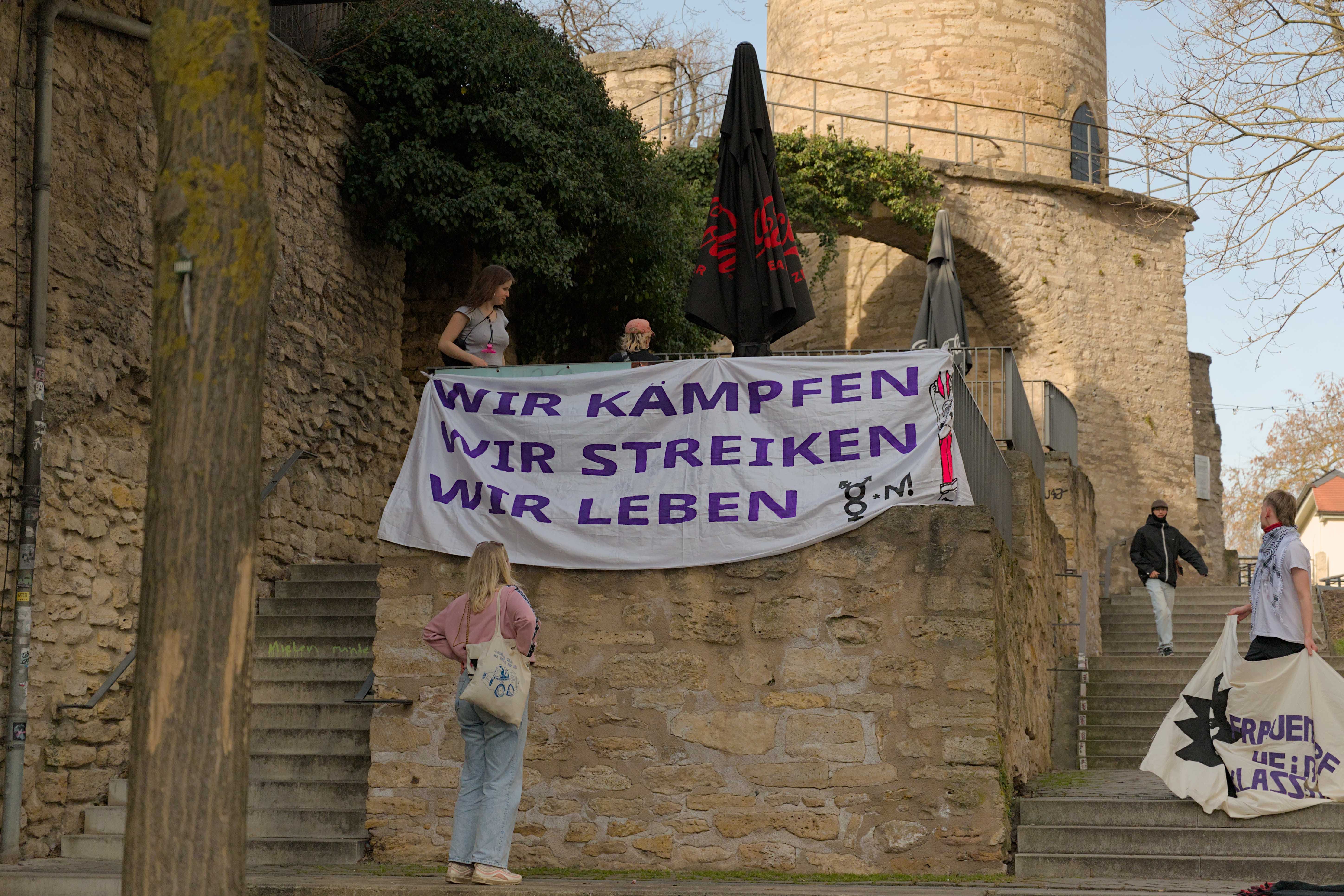 Zum internationalen feministischen Kampftag gingen in ganz Deutschland Menschen auf die Straße. In Jena rief ein breites Bündnis unter dem Motto „Wir kämpfen, wir streiken, wir leben“ zur Demonstration auf. An dieser nahmen über 1.000 Menschen teil. Zuvor gab es Brunch und Workshops, auch für Kinderbetreuung war gesorgt.