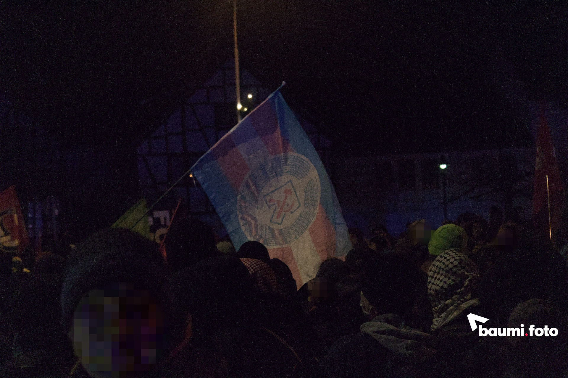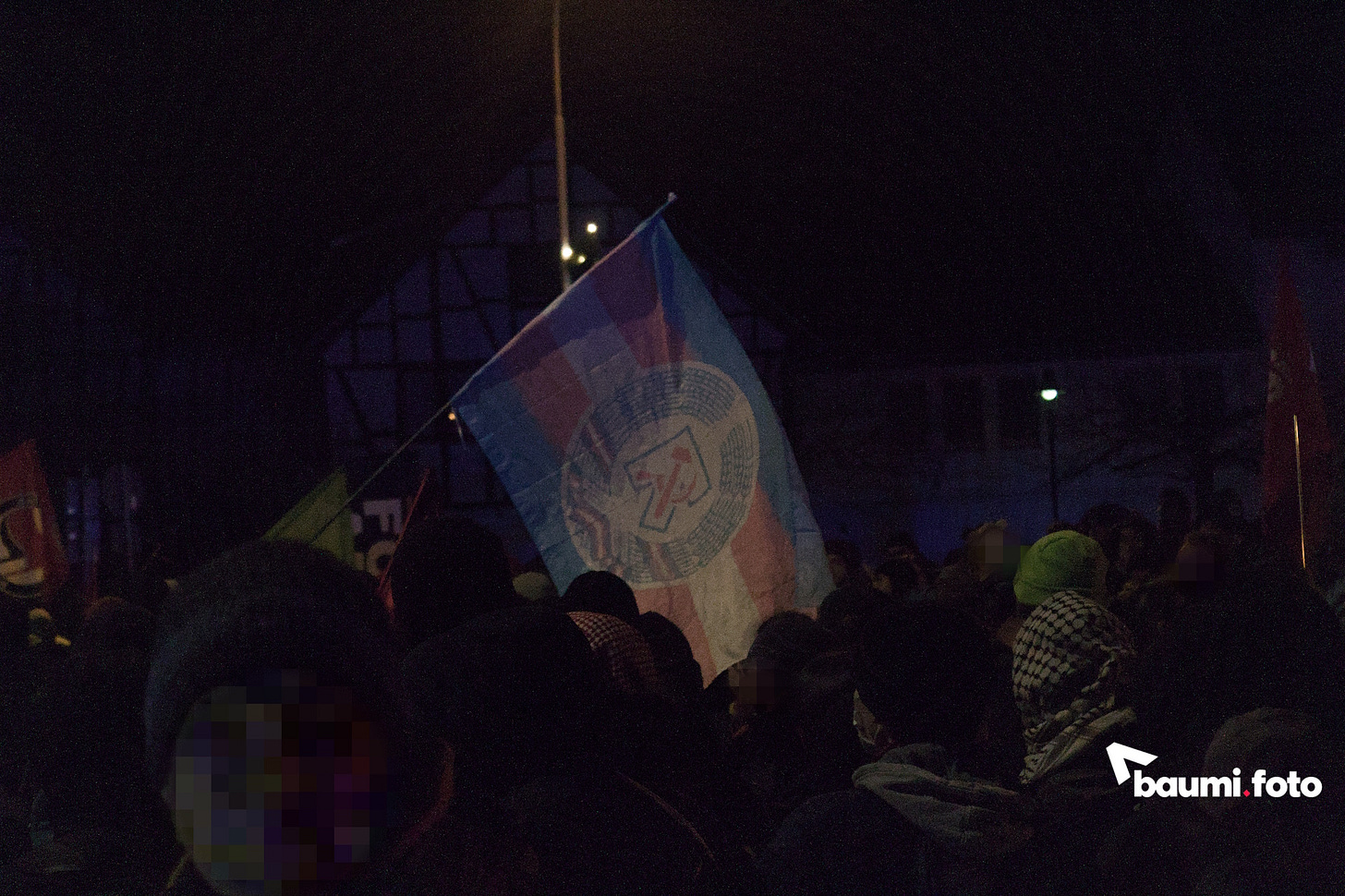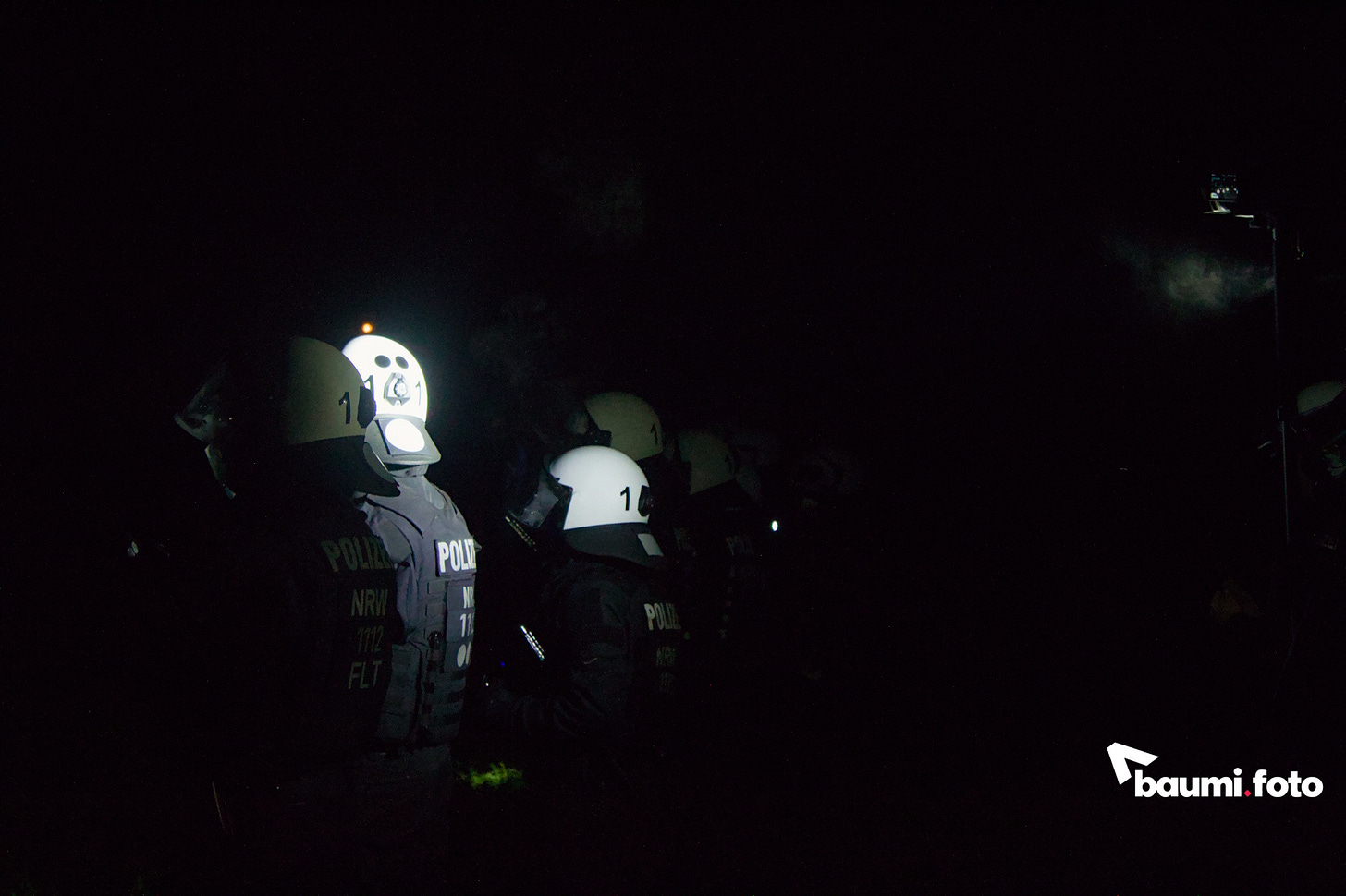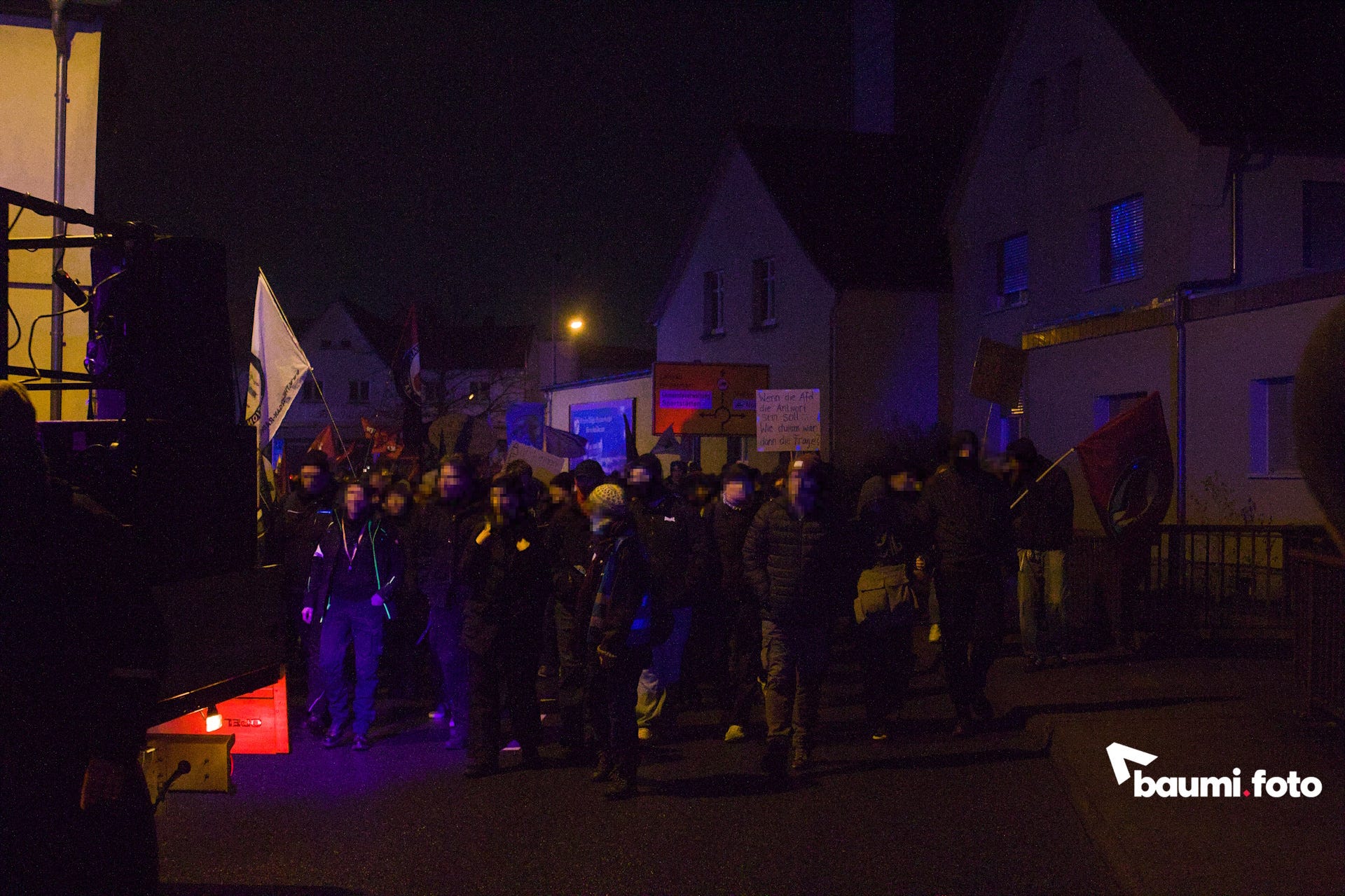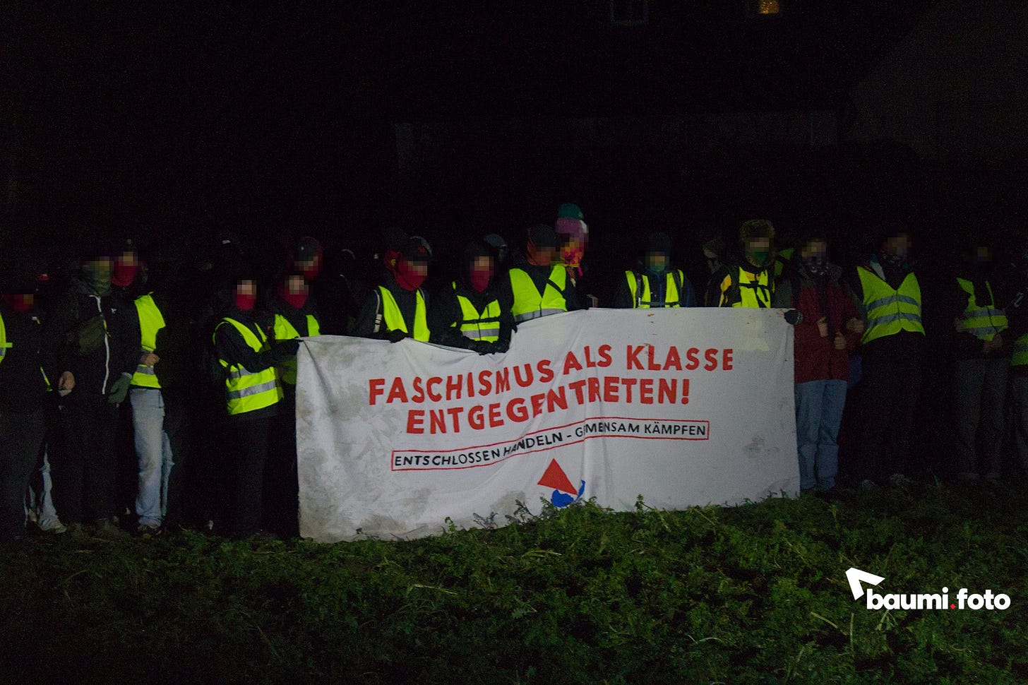 Unser Demo-Samstag begann um 5 Uhr in der Nähe Gießens, mit einem einstündigen Fußmarsch nach Heuchelheim. Dort ging es bereits Turbulent zu. Die Demonstrierenden liefen entgegen der Laufrichtung der angemeldeten Demonstration und endeten für einige Minuten auf einer Wiese, gestoppt durch die Polizei. Nach diesem Ausflug ging es Schließlich gegen 7 Uhr in Richtung der normalen Strecke und folgend in Richtung der Lahnparkstraße.