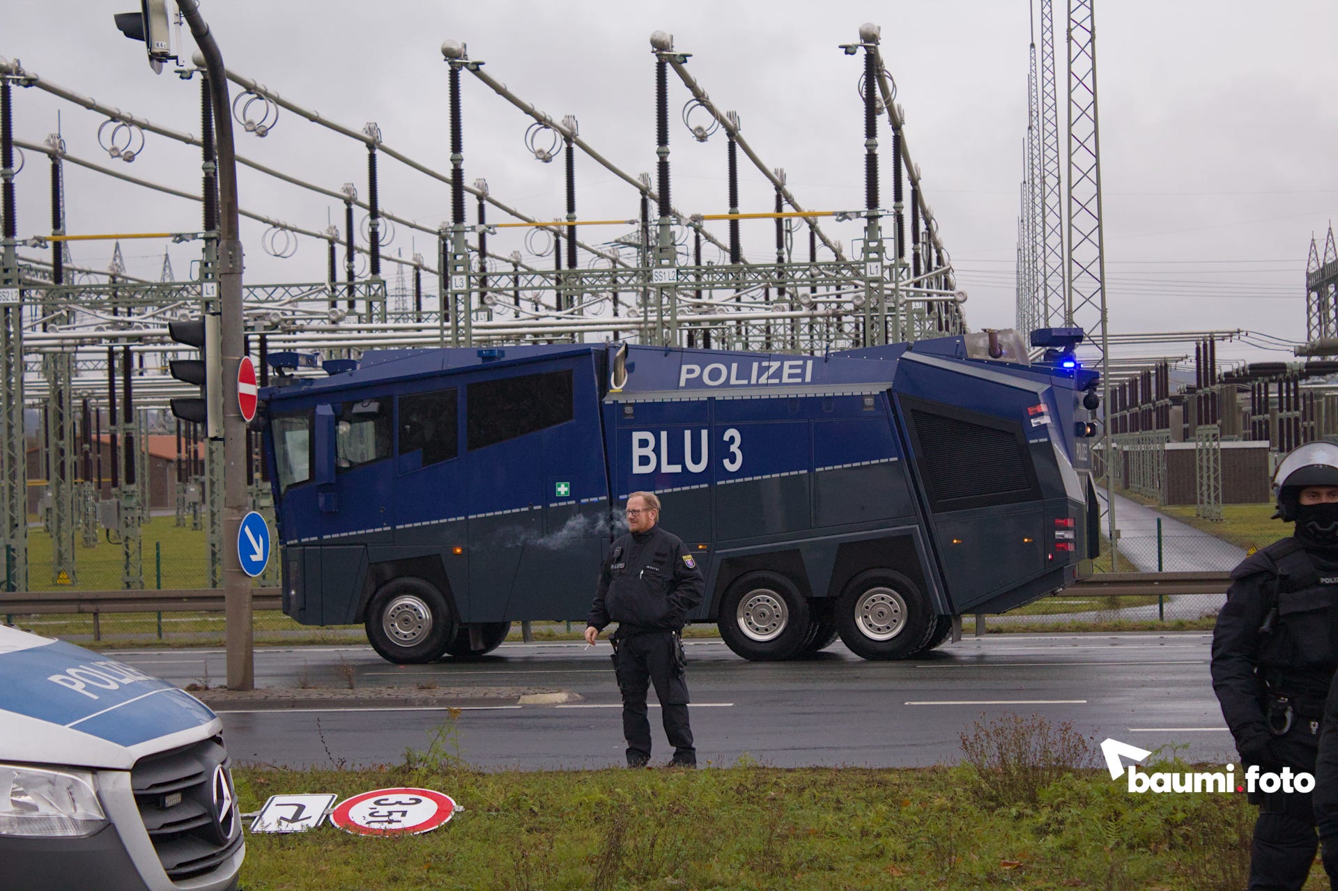 Erst hieß es, die beiden Blockaden dürften zusammen loslaufen, man wisse aber noch nicht wer zuerst und wohin. Dann hieß es plötzlich niemand dürfe mehr laufen und wieder etwas später dann doch, aber nur aus der Stadt heraus. Dann fuhr man mehrere Wasserwerfer vor. Ob zur Show - man hat ja einmal bezahlt die anzukarren - oder zur effektiven Einschüchterung, bleibt an der Stelle wohl der Interpretation aller Außenstehender überlassen. Sie fuhren jedenfalls nach 15 Minuten wieder zurück in Richtung der Stadt.