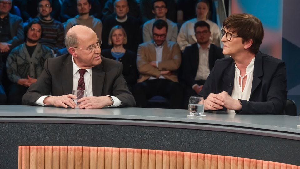 „Die falsche Sprache“, „die fehlende Ansprache an Nichtwählerinnen*“, sagt Gysi. Und trifft damit einen Nerv. Während sich FDP und SPD in der Show um butterweiche Zahlen und die Schuldenbremse streiten, bringt Gysi auf den Tisch, was viele denken: Warum ist die AfD so stark? Weil die etablierten Parteien lieber hier und dort ein paar rechte Narrative kopieren, anstatt sich zu fragen, was sie falsch gemacht haben. Was braucht es mehr, um die Menschen von der Straße zurück in die Wahlkabinen zu holen? Sicher keine sechs Cent billigere Butter, wie Christian Dürr von der FDP allen Ernstes als Lösung verkauft.