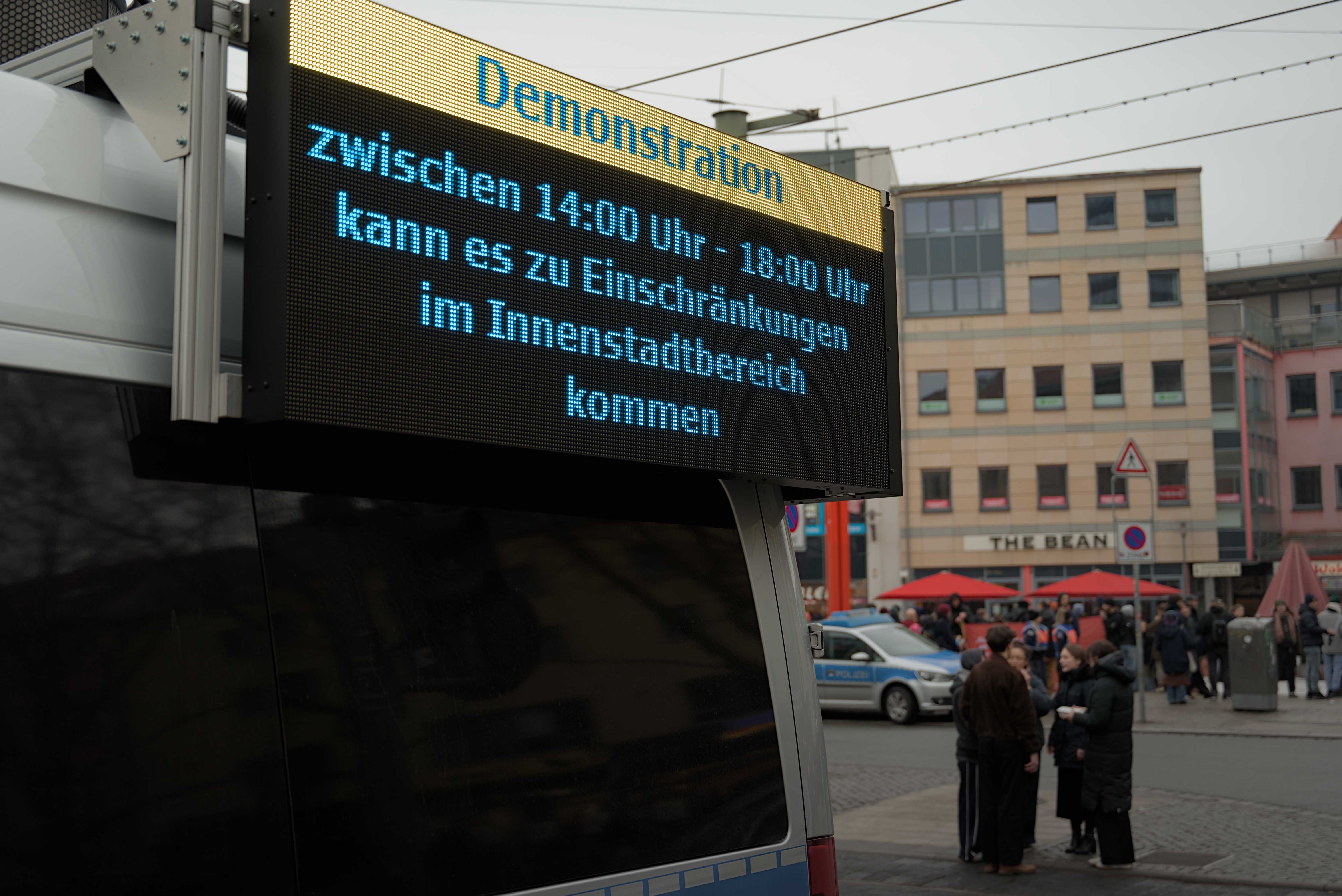 So zog die Demonstration auf einer 2,5 km langen Schleife durch die Innenstadt, vom Holzmarkt zum Theatervorplatz.