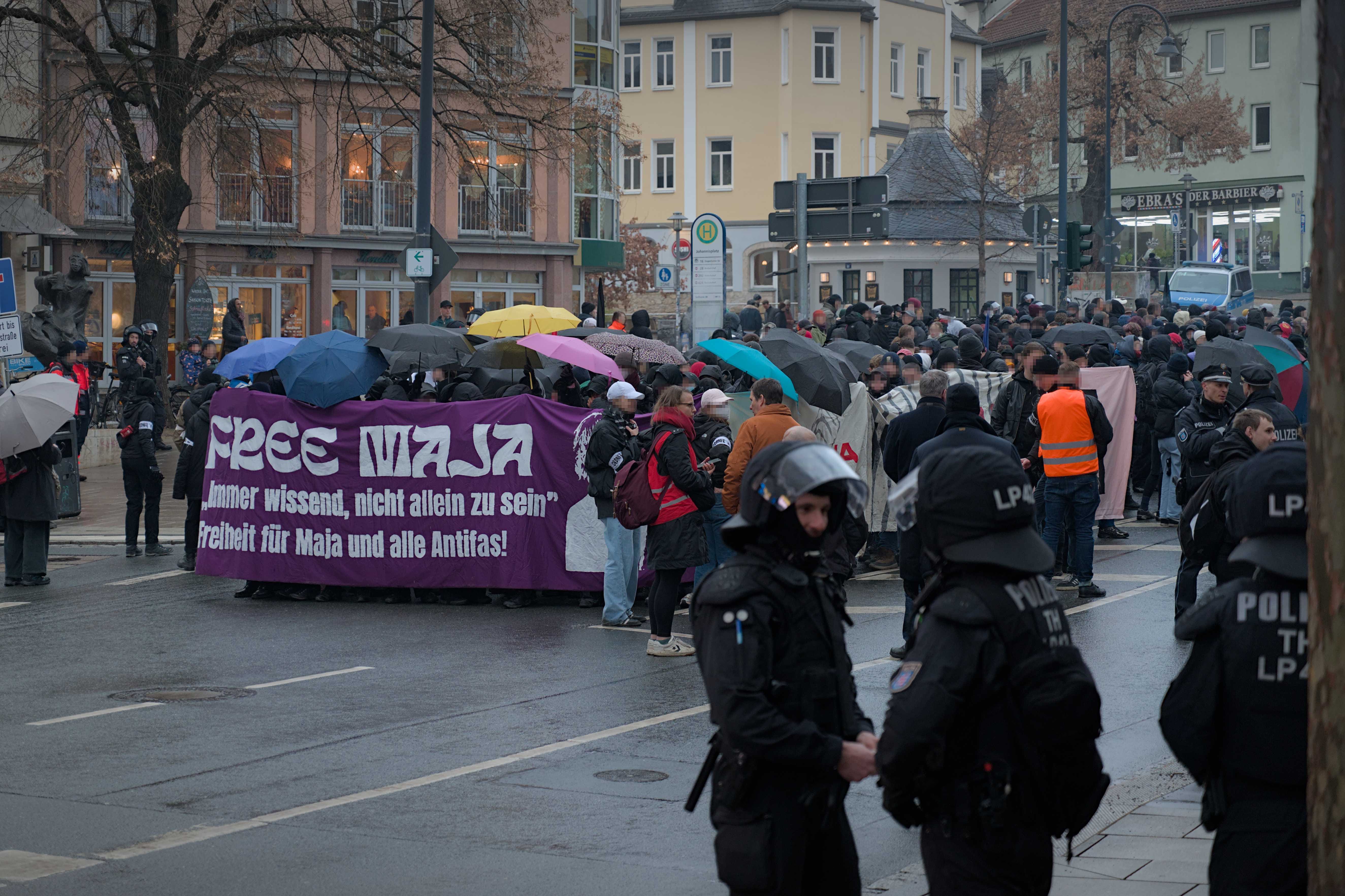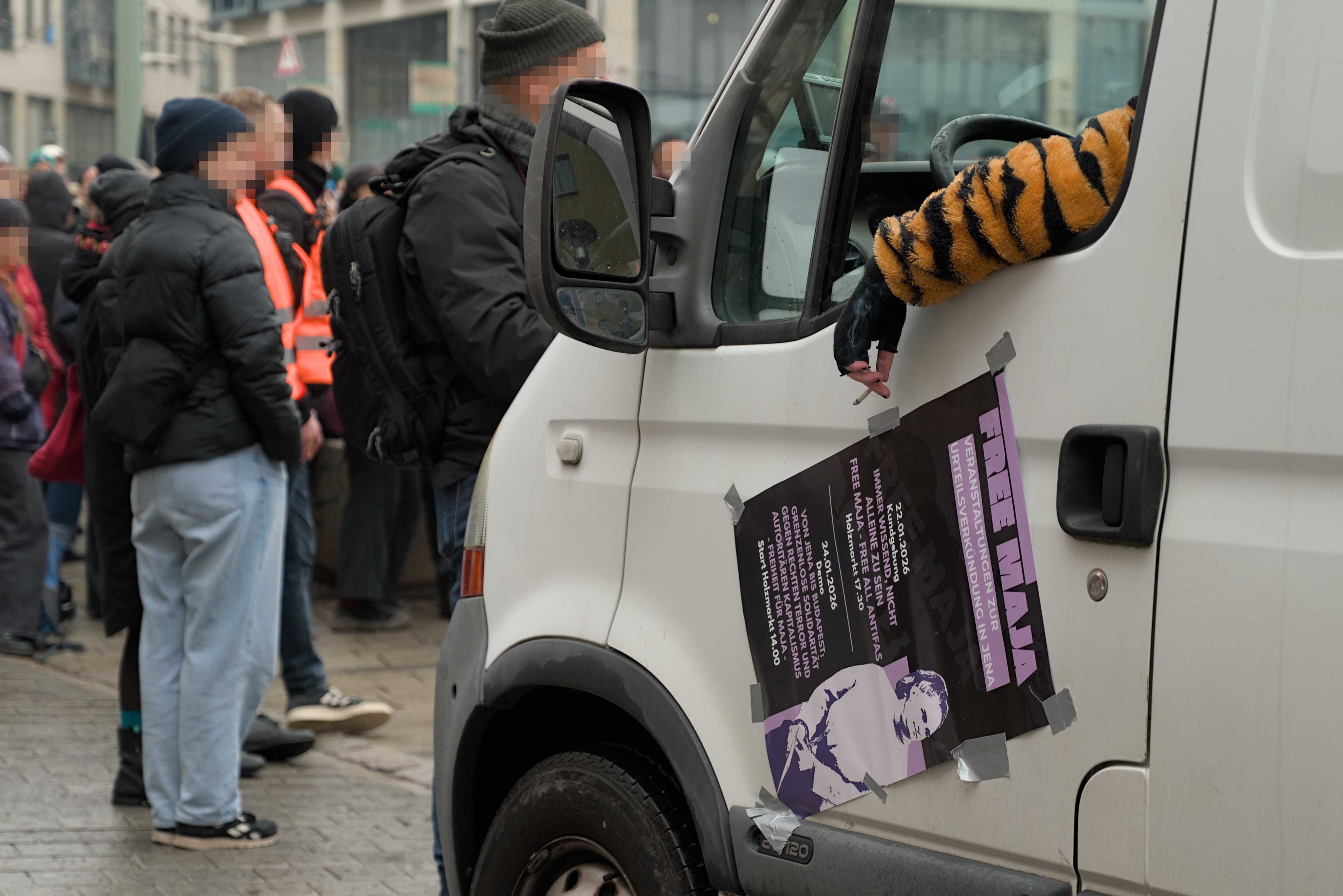 Knapp vier Stunden demonstrierten um die 1.5001 Antifaschist*innen gestern (07.02.2026) in Jena. Nachdem bereits am letzten Mittwoch rund 800 Menschen zusammenfanden, um sich nach der Urteilsverkündung von acht Jahren Haft solidarisch zu zeigen, reisten am Wochenende auch Aktivist*innen aus Leipzig und anderen Städten an.