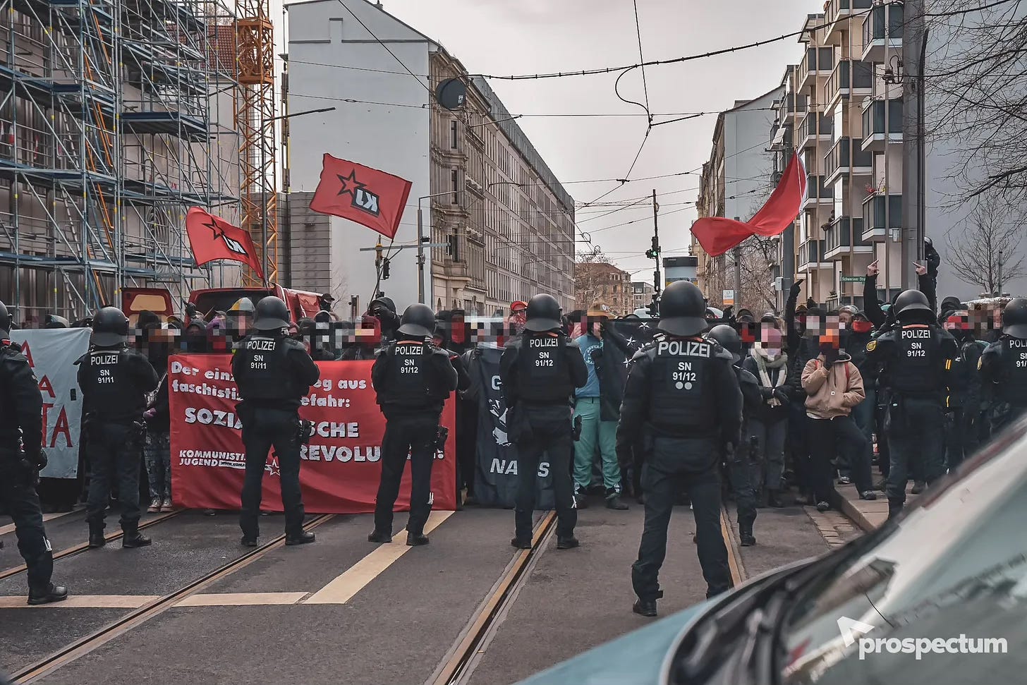 Jedes Jahr versuchen Neonazis, den Jahrestag der Bombardierung Dresdens für ihre geschichtsrevisionistische Propaganda zu nutzen. Doch auch 2025 ließ die Stadt sie nicht ungestört marschieren: Tausende Gegendemonstrant*innen stellten sich dem rechten Aufmarsch entgegen – mit Blockaden, Protesten und lauten „Nazis raus!“-Rufen. Während die Polizei den rechten Marsch schützte, ging sie mit massiver Gewalt gegen antifaschistische Protestierende vor.